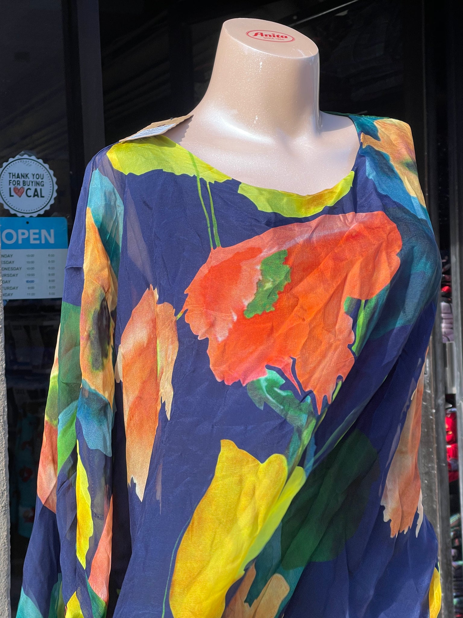 AM 5707 – BIG FLOWER SILK TUNIC DRESS- Plum Loco