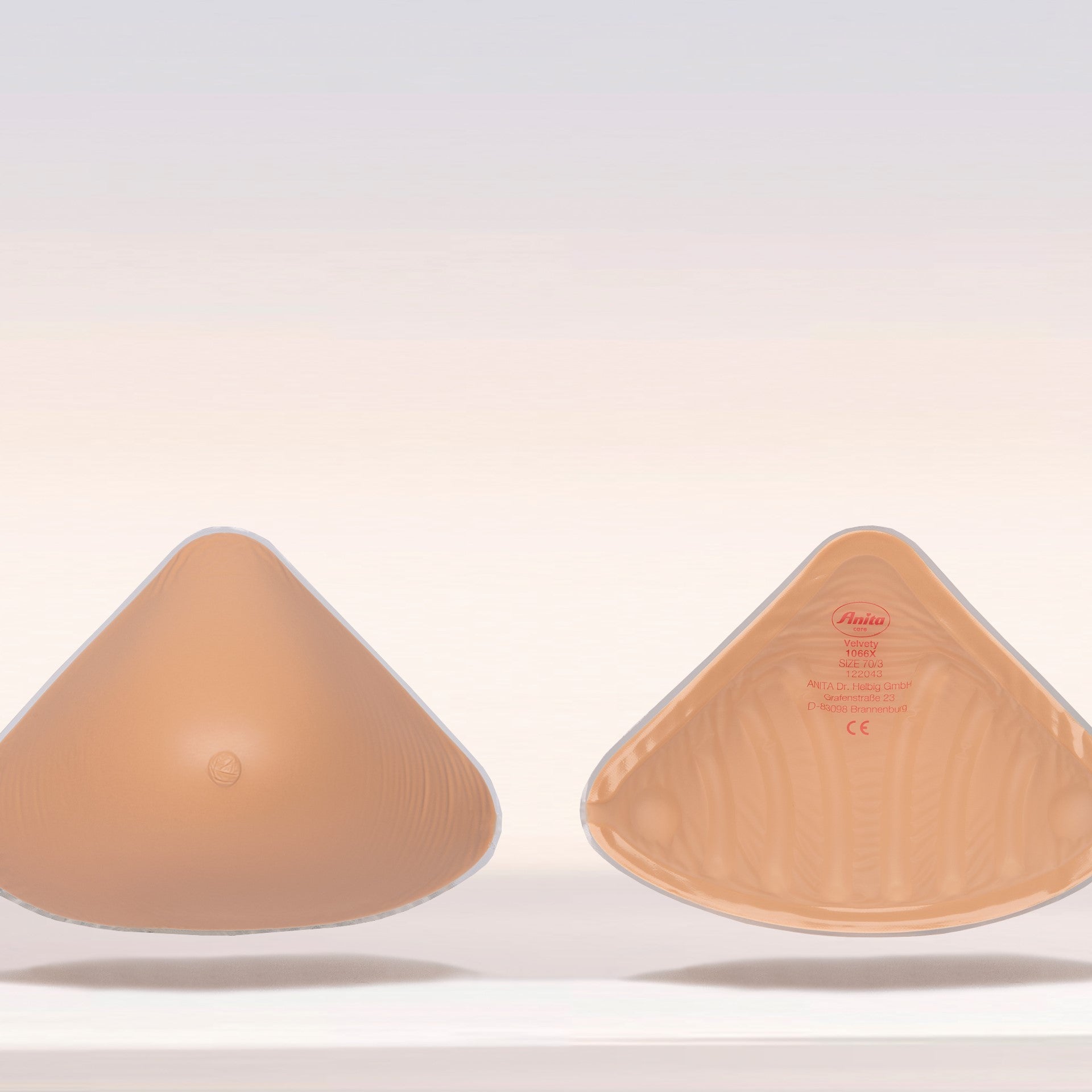 Breast Form Velvety by Anita is a light weight silicone breast prosthesis, designed to fit into modern minimalist bra designs, so there is no chance of it sticking out from the bra cup provided the right bra cup is matched to the prosthesis.