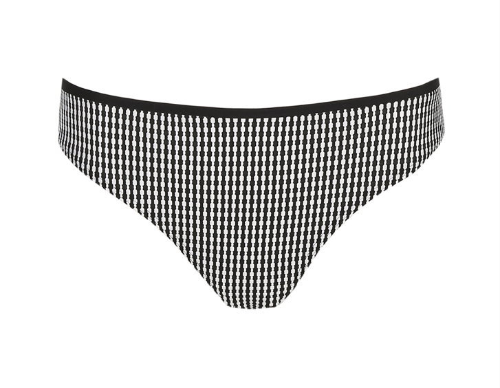 Stylish bikini briefs made from a soft jacquard fabric with retro check pattern. A fashionable look at all times with this black and white jacquard fabric.