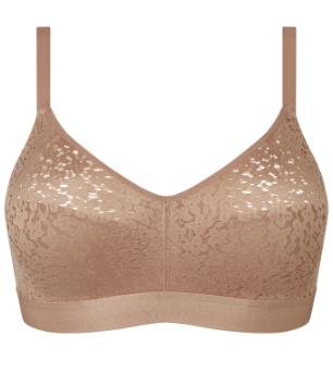 Bra without underwire whose construction allows it to ensure impeccable support and reassuring coverage. Ultra soft floral lace molded cups perfect for everyday wear. The elastic and soft underbust band keeps the product in place throughout the day. Very covering funnel back all in opaque mesh with seamless finish for a smoothing effect.