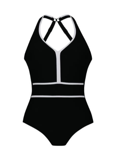 Classic black with a tailored twist! This stunning one piece swimsuit from Anita converts to racerback, too!