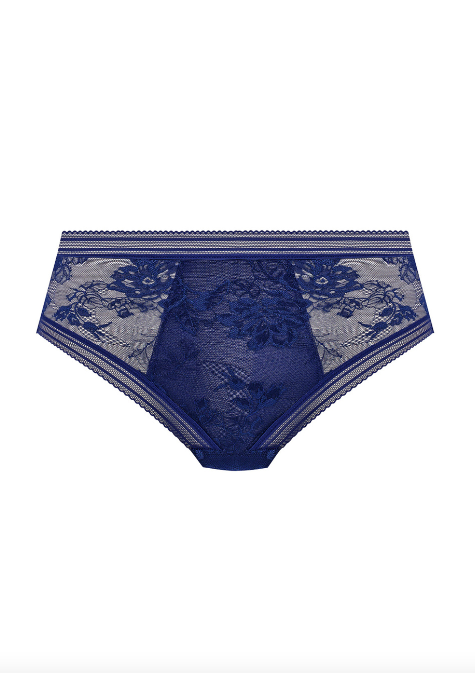 Capture comfort with Fantasie's Fusion Lace Brief, now available in French Navy. Crafted from super soft fabric through the back, with delicate flat floral lace through the front offering an elegant finish.