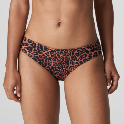 Comfy bikini bottoms with a trendy retro look. The on-trend color this summer is a warm shade of rust called sunny chocolate.