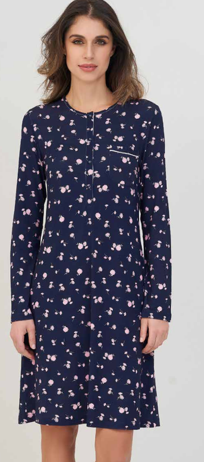 This flower-speckled sleeping gown offers full coverage with its long sleeve and high-button crew neck. Sleek, soft, and breathable viscosa fabric will keep you covered all year long.