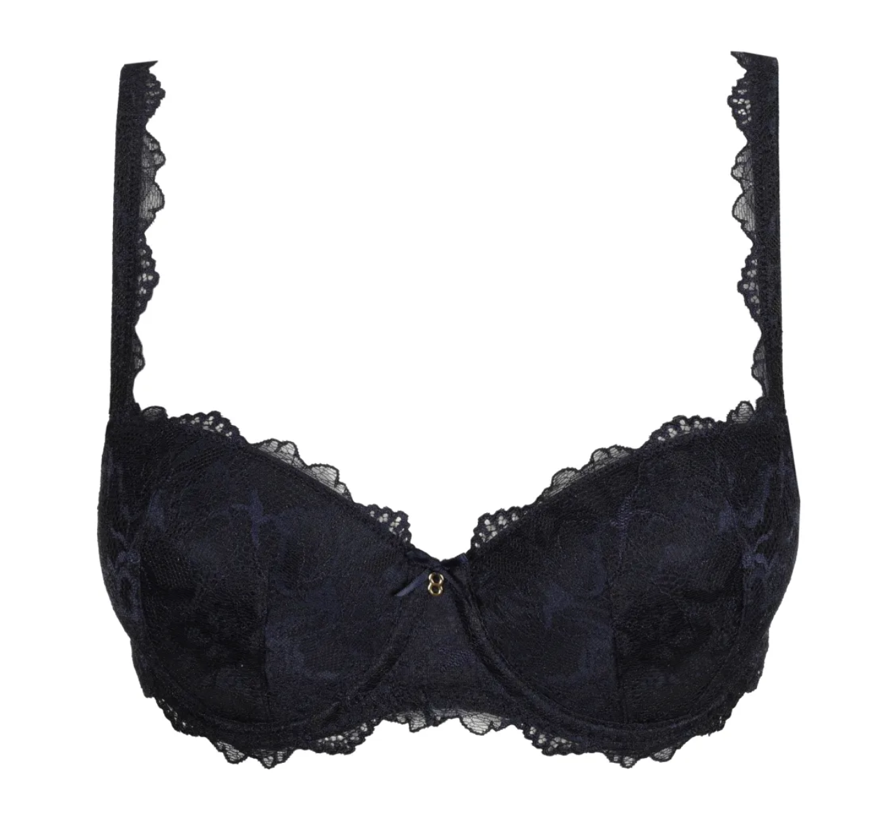 With this padded balcony bra, you can have it all: Unprecedented comfort and an irresistible cleavage. The lace details give it a fashionable yet timeless allure. Velvet Blue is an elegant midnight blue that is flattering to every skin tone, with a stylish degradé of blues in the embroidery. A hint of glitter gives your cleavage a subtle glow.