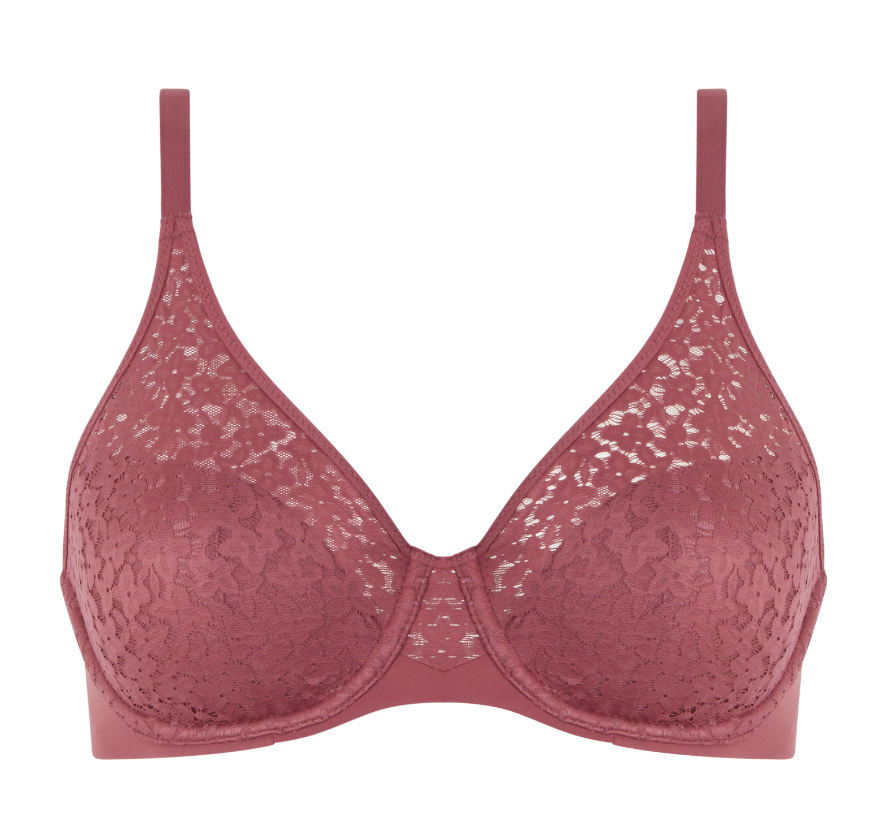 A boldly modern molded bra which offers a high level of support up to H-cup thanks to its constructed lining. Cup lined with mesh on the top part to bring lightness and femininity to the shape. The floral lace is molded on the full cup for maximum invisibility and comfort. Elegant finish at the center gore with a contrasted lace Chimney back and sides in soft opaque fabric with enclosed seams for a high level of comfort and invisibility. French Designed