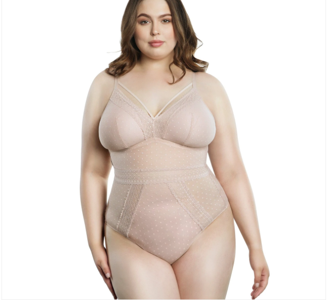 The perfect bodysuit for every body! Our Mia Dot bodysuit has wire-free, mesh dot lace cups with removable and reversible padding. The ultra-flattering V-shaped back and thong back insures no visible panty lines. Perfect to wear alone or underneath clothing