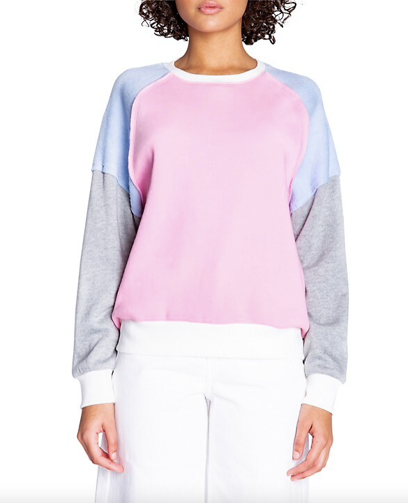 DESCRIPTION: Classic crewneck sweatshirt finished with vibrant patchwork blocks. This pullover cozy crewneck is perfect to enjoy your downtime in soft, lofty fleece.