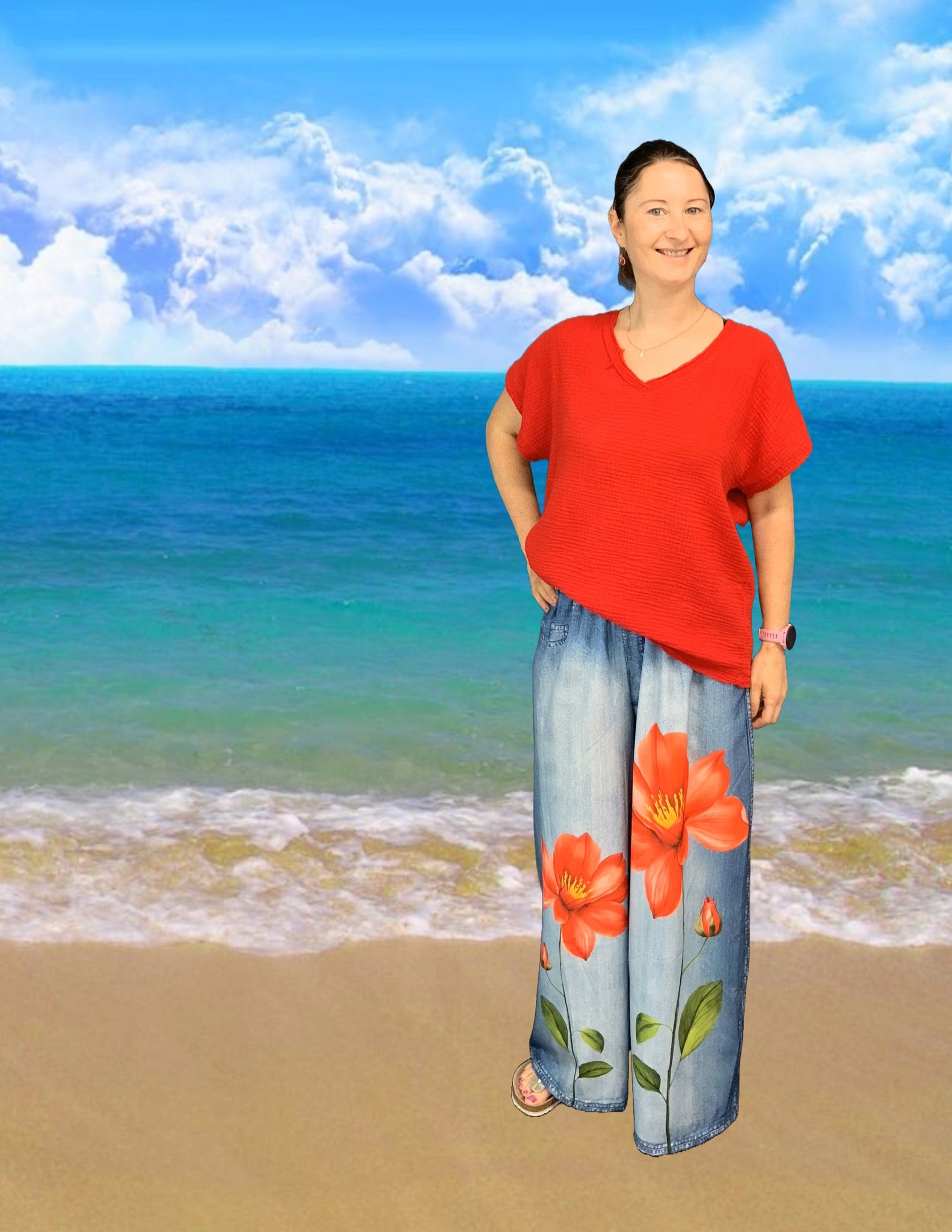 PLUM LOCO- LADIES WOVEN FUNKY JEANS PRINTED PANT- 9526