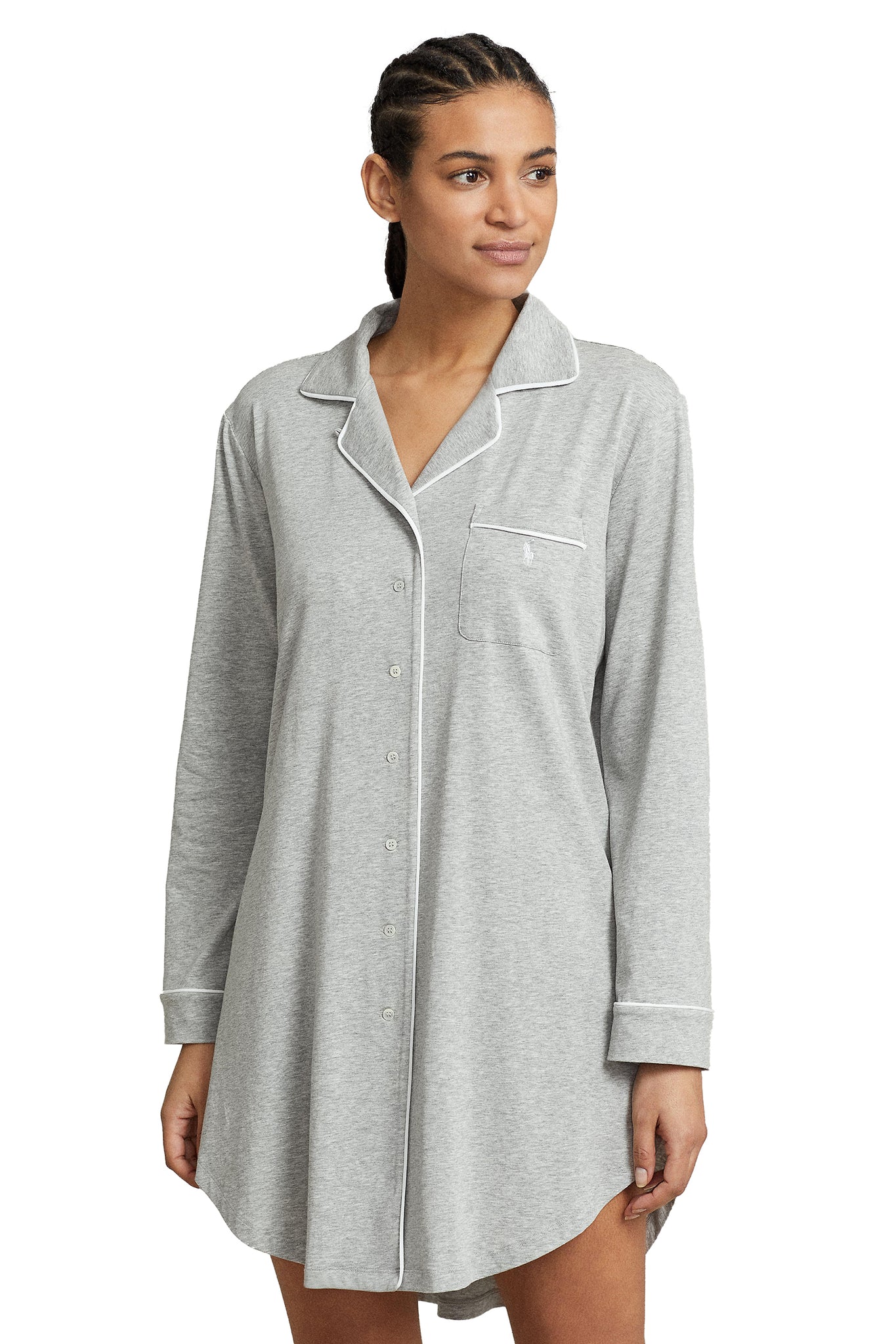 Experience luxurious comfort and style with the POLO RALPH LAUREN SLEEPSHIRT in heather grey. Made with high-quality materials, this sleepshirt is designed to provide the ultimate relaxation during your nights. With the iconic Polo Ralph Lauren logo and a comfortable fit, you'll sleep in style and wake up feeling refreshed and rejuvenated!