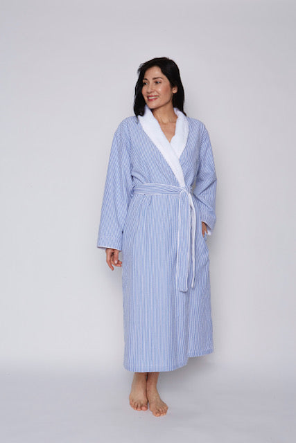 Kayanna / Mansfield Seersucker Stripe Lined Plush Robe M144